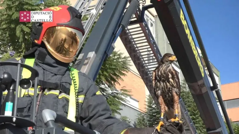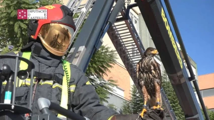 Bomberos rescatan a una águila atrapada en una antena de un edificio de Almassora