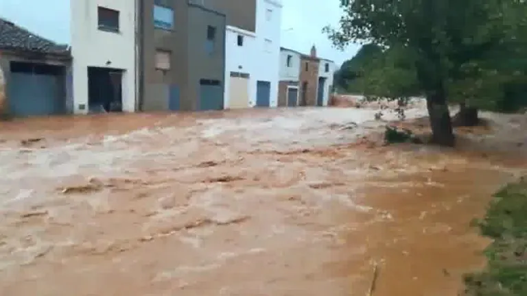 Se desborda la rambla de la Basseta en Benlloch, como muestran las imágenes que ofrece COPE Castellón. El municipio supera los 250l/m2, de los que 215 se han registrado hasta las 16:00 horas del viernes.