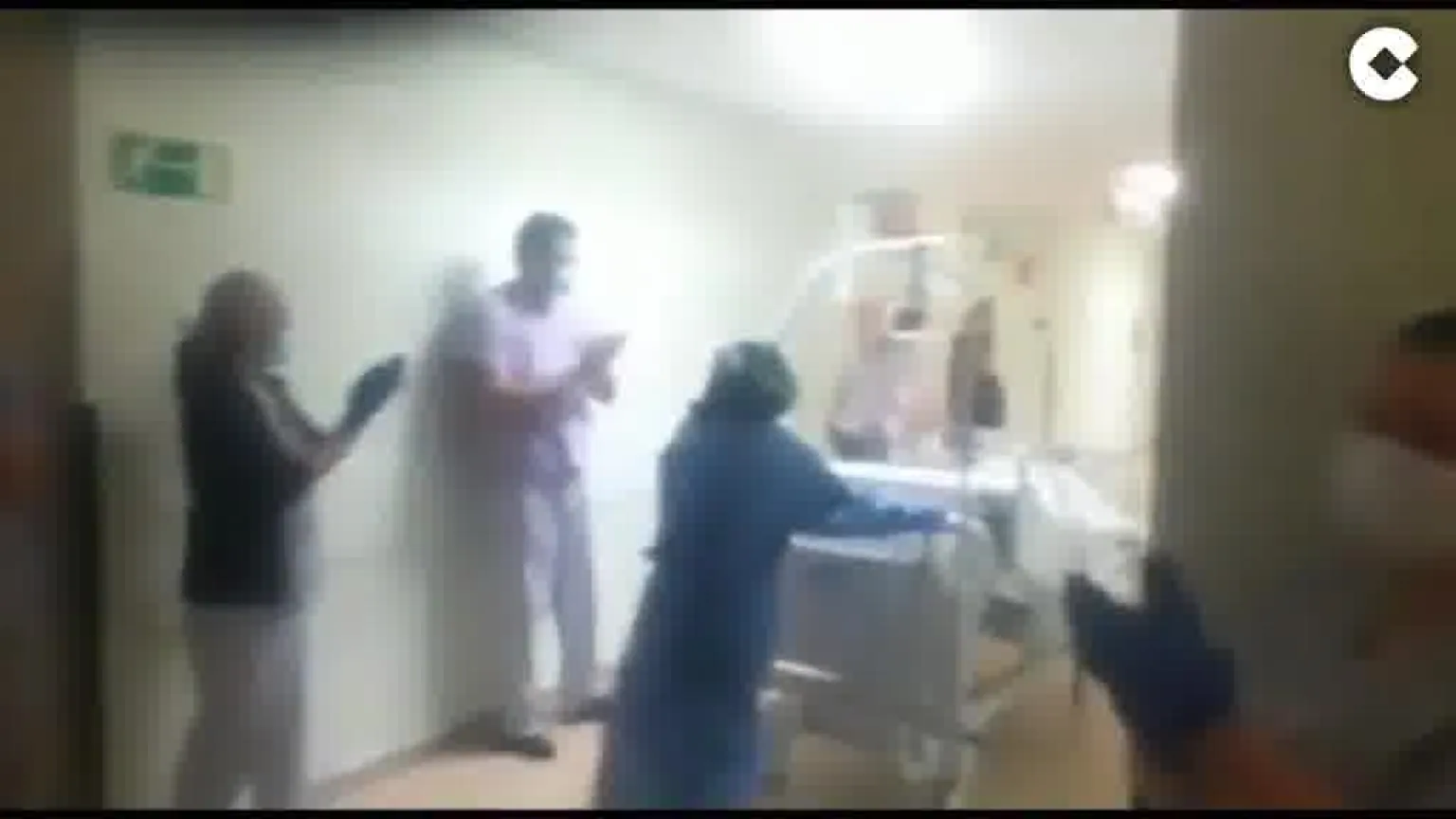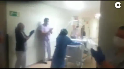Los sanitarios del Hospital General de Castellón celebran que un paciente abandone la UCI