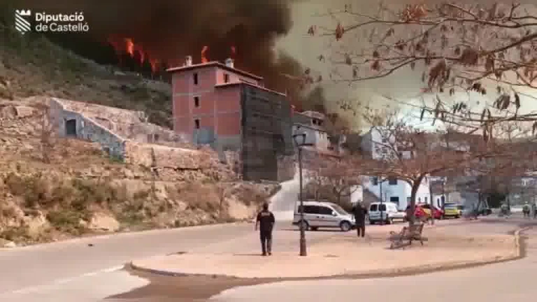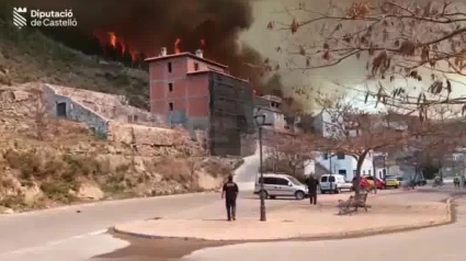 Las labores de extinción evitan que el fuego llegue a la localidad de Montan, las previsiones meteorolgógicas son favorables para la actuación de medios terrestres