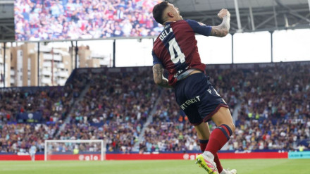 Un gol de Dela de penalti da al cuadro granota la victoria ante el Eibar (1-0). El Levante UD anuncia la renovación de Brugué hasta 2028 en plena fiesta por el ascenso