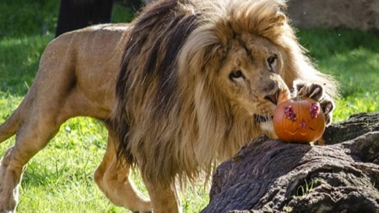 El personal técnico de Bioparc València ha elaborado, con motivo de la celebración de Halloween, un "enriquecimiento ambiental", que implica aportar distintas acciones que motivan y estimulan los instintos de las distintas especies que habitan el parque.