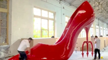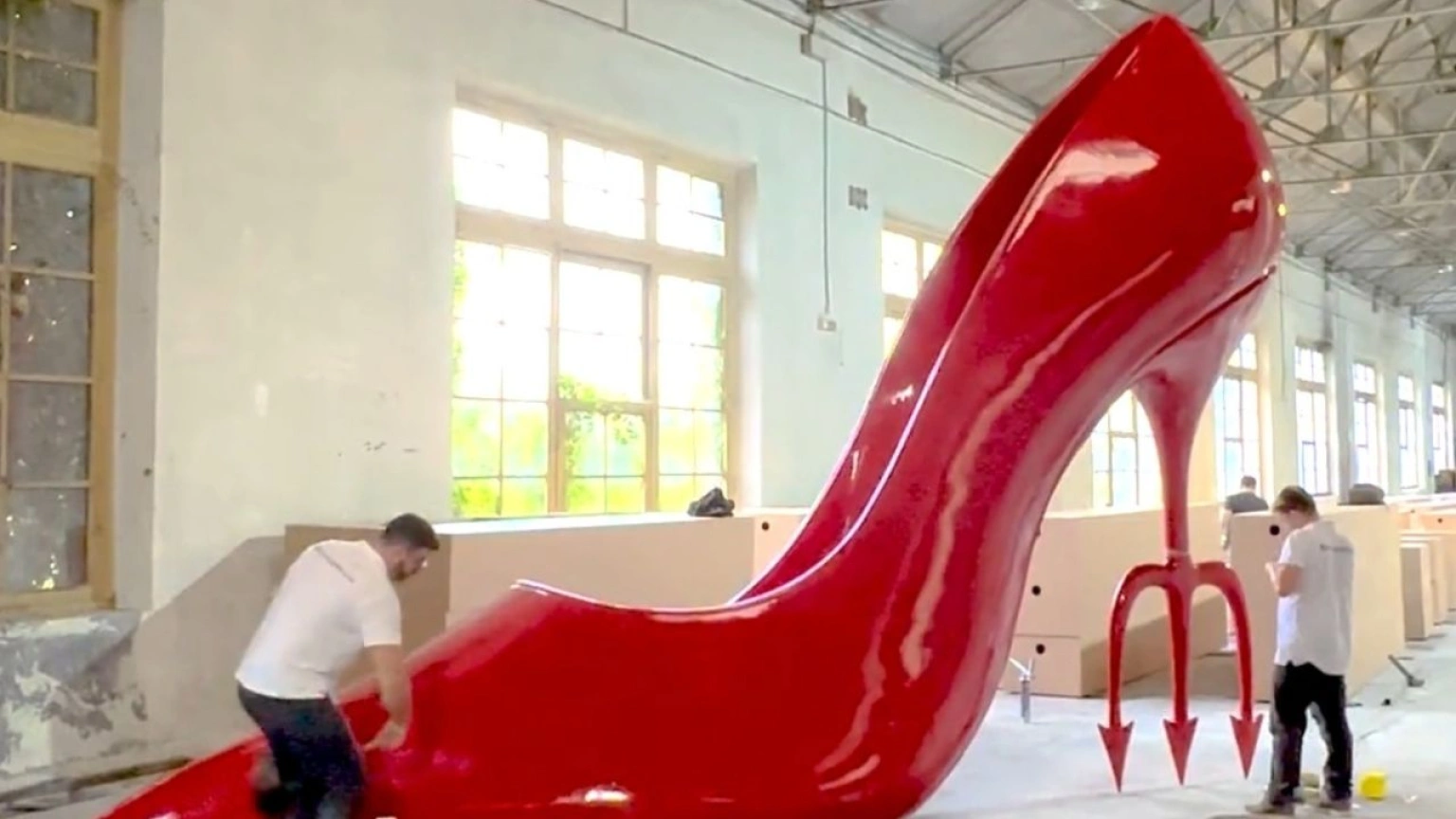 Dos valencianos crean el zapato gigante de "El diablo viste de Prada" para los Princesa de Asturias