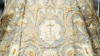 Melchor Seguí, rector de la Basílica, explica la historia y sentido del manto restaurado