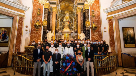 La plantilla al completo visitó este mediodía la Basílica de Valencia como tradicional preludio al arranque de la temporada