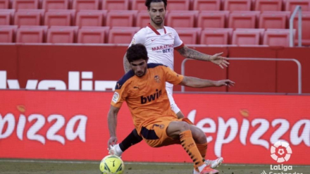 Dos goles de Maxi Gómez, que llevaba cuatro meses sin marcar, dan los tres puntos y la salvación al equipo de Mestalla. Salió con cinco centrales y la novedad de Kangin