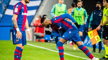 El africano jugó sus primeros minutos con el Levante UD desde su grave lesión de rodilla en febrero de 2019. En julio, en el Huesca, se rompió el tendón de Aquiles