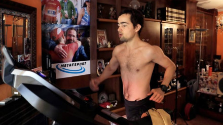 El ultrafondista Iván Penalba, pendiente de la homologación de su marca en cinta de correr.