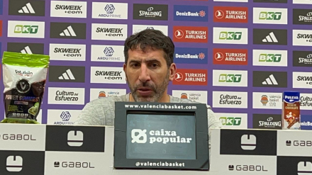 El entrenador del Valencia Basket prefiere ir partido a partido y no reservar recursos mañana en el Palau Blaugrana, ni darle mayor importancia a la visita a Vitoria del domingo