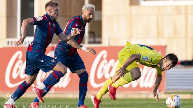 Tras una primera aproximación del Villarreal con un centro de Peña desde la derecha que no llegó a rematar Yeremy Pino, el Levante respondió con una acción individual de José Campaña, que se liberó de la marca de su defensor y chutó desde la frontal demasiado centrado.