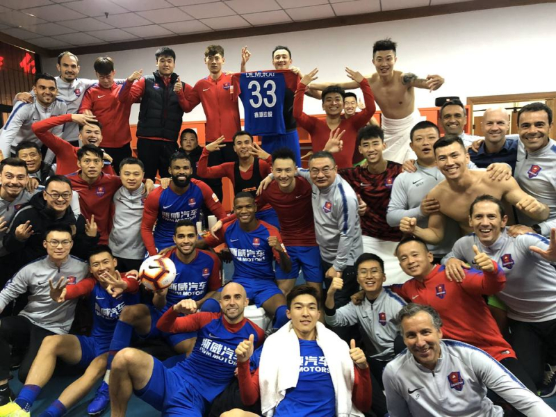 Pereira y Astorgano celebran una victoria con el Chongqing Liangjiang Athletic