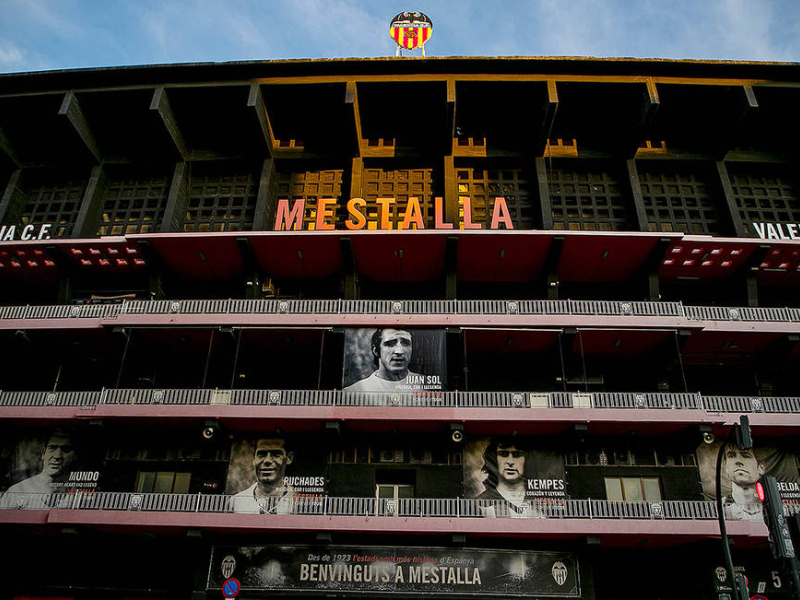 La fachada de Mestalla muestra a Sol entre sus leyendas