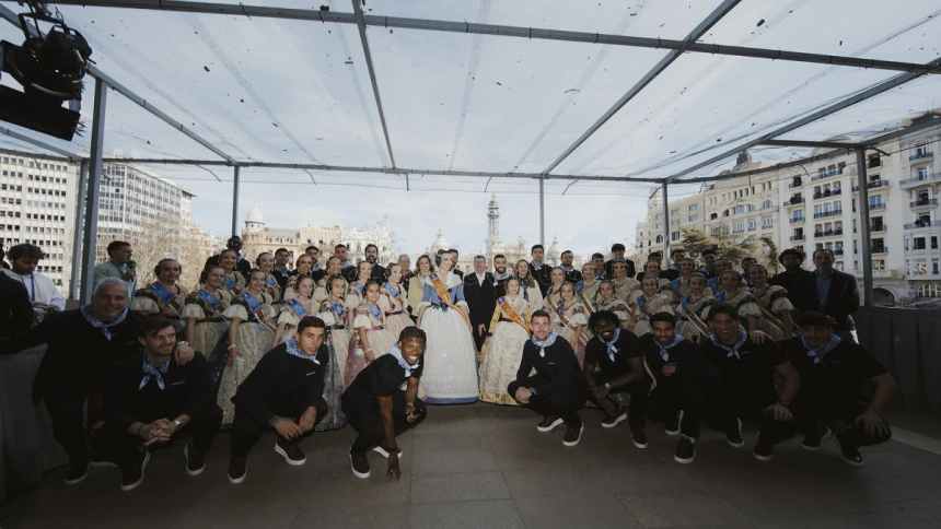 En primera fila se colocaron Danjuma y Ramazani, que junto a Javi Guerra, Diego López y Jesús Vázquez han vibrado con un disparo que ha hecho temblar a los asistentes a la plaza. Sadiq, como siempre, uno de los más expresivos. Tras la mascletà, la expedición ha posado con las Cortes de Honor de este año 2026, así como con la alcaldesa de la ciudad, María José Catalá. La primera plantilla estuvo acompañada en el consistorio por el director general Javier Solís y el director general de fútbol Ron Gourlay.