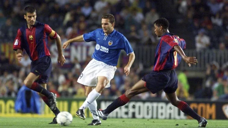 Los dos triunfos llegaron en el mismo año, aunque, lógicamente, en diferentes temporadas. En la 2002-2003, el 19 de enero de 2003 el Valencia CF goleó por 2-4 con tantos de Pablo Aimar, John Carew, Fabio Aurelio y Rufete. Por parte culé marcaron Thiago Motta y Patrick Kluivert. Es decir, los hijos de dos de los realizadores de aquel partido estarán el domingo a las órdenes de Baraja: Fran Pérez (el de Rufete) y Justin Kluivert. Las vueltas que da la vida.