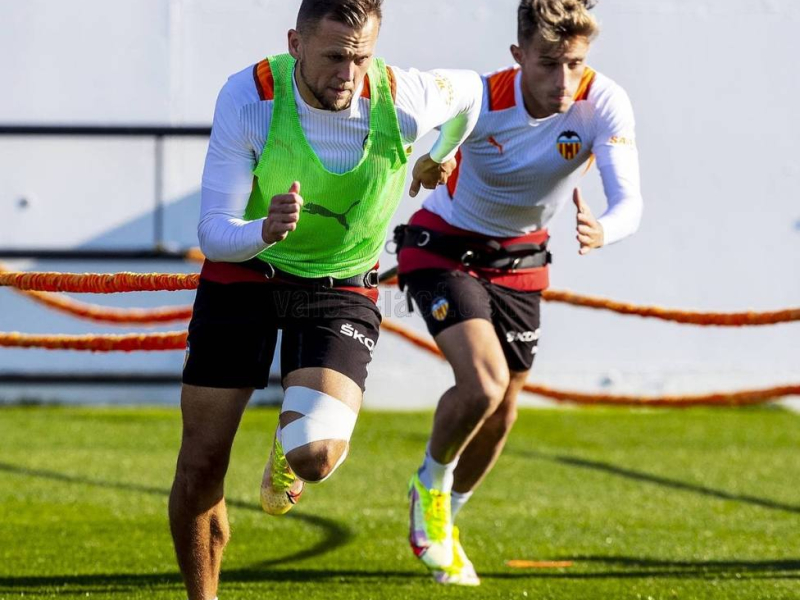 Maxi regresa tras un mes de lesión. Paulista, Thierry y Lato continúan trabajando al margen y son seria duda. Guedes no ha completado la sesión de trabajo en Paterna.