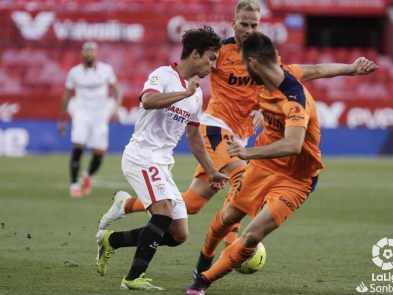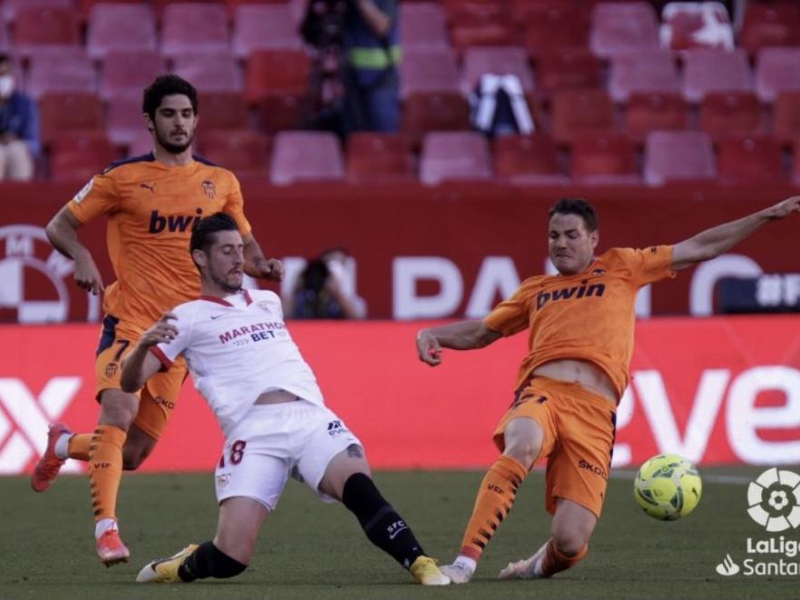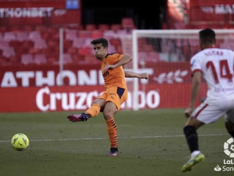 Tras el descanso, el Valencia salió más atrevido. A la contra y con la moto de Guedes a tope de revoluciones, intentó pillar desprevenido a un Sevilla atascado. Vallejo luego la mejor ocasión con un remate a bocajarro cerca del área pequeña, pero fue a las manos de Bono. Por eso Lopetegui metió cambios sobre el césped. Fernando, Papu Gómez y Acuña. Y se activó el conjunto hispalense. Buen pase de Fernando a la espalda de Ferro, gana la posición En-Nesyri y bate por bajo a Cillessen. El VAR traza las líneas y Estrada Fernández da el gol como valido. 1-0.