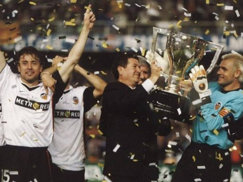 Yo tuve un desencuentro tremendo con él. Lo más trascendente que yo tuve con él, desgraciadamente fue un desencuentro. Fue el segundo encuentro de Liga. La temporada en la que llegué, 98-99. Acababa de llegar. Perdimos un partido en Valladolid. Entonces como vicepresidente, dijo que el equipo no le había gustado, que Cañizares había estado nervioso… llevaba razón. No habíamos hecho un buen partido, perdimos. Al día siguiente, yo salí y dije: si vamos a tener aquí, la crítica pública, diariamente, cada vez que perdamos un partido, apaga y vámonos. Nada más y nada menos que por un vicepresidente. Al día siguiente, me pidió perdón. Le dije que no se preocupara. Ya está. Ese desencuentro podía haber sucedido, sin tener continuidad o que una persona buena y humilde como él, hiciera por solucionarlo para que no dejara ningún tipo de huella. Así pasó. A partir de ahí siempre tuvimos una buena relación porque era imposible llevarse mal con él. Nunca tuvo la intención de hacerle mal a nadie. Ese tipo de personas es imposible que tengan enemigos.