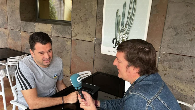 El entrenador del Alba de Berlín, Israel González, atiende a Deportes COPE Valencia horas antes de jugar en la Fonteta