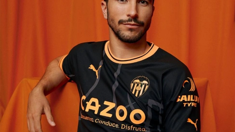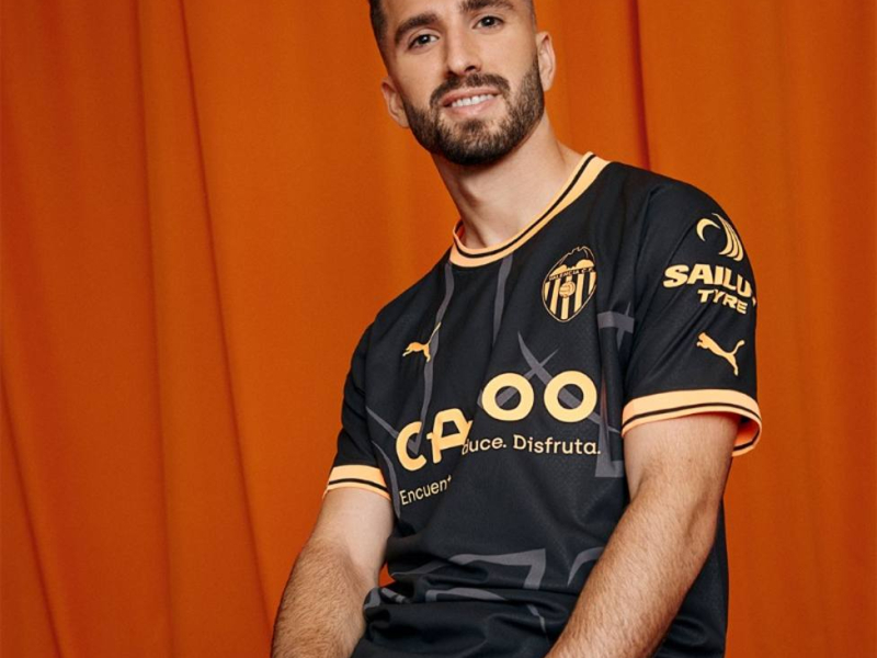 El Valencia CF presenta la camiseta visitante, negra y con destellos naranja. El diseño ha triunfado en el valencianismo