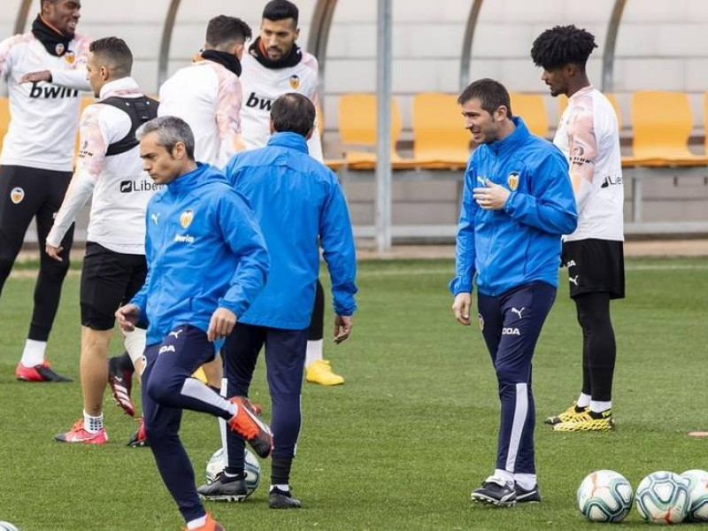 Albert Celades dirigiendo una sesión de entrenamiento en Paterna