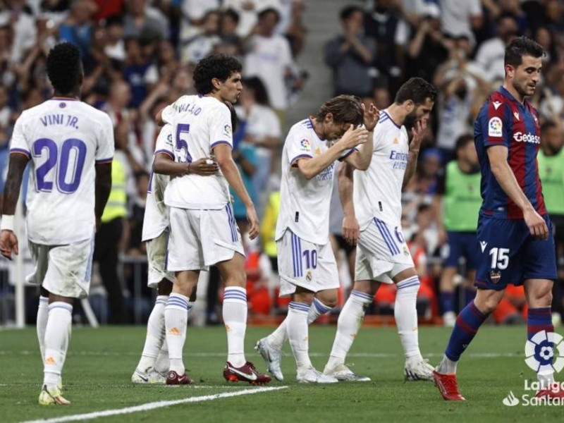 Una exhibición de fútbol y de poderío ofensivo de un Real Madrid que recupera sensaciones de cara a la final de la Liga de Campeones, sentenció el descenso del Levante a LaLiga SmartBank cinco años después, en un duelo repleto de agonía ante el vendaval del campeón, el día que Vinícius firmó su primer triplete y Benzema se convirtió en el segundo máximo goleador de la historia del club blanco.