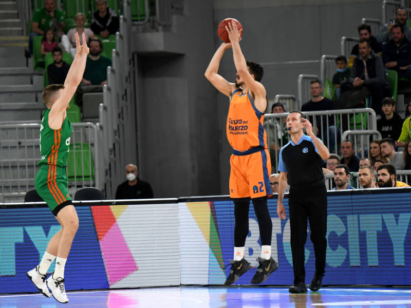 Valencia Basket pierde en Eslovenia (82-76) tras fallar 28 triples. Ya no podrá acabar primero de su grupo