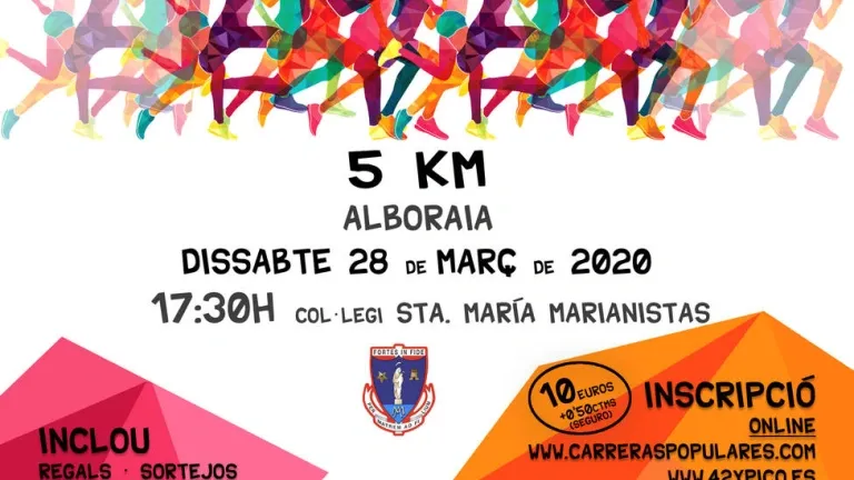 Será el sábado 28 de marzo de 2020, a las 17.30h, con salida y meta en el colegio Sta. María Marianistas de Alboraya y con la colaboración del ayuntamiento de Alboraya.