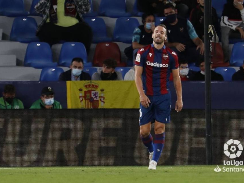 A pesar de que Bardhi falló una clara ocasión de gol, el Levante no daba señales claras de peligro, mientras que su rival, a base de posesiones largas y balones a los espacios, controlaba el juego. Superada la hora de juego, el fútbol del Levante mejoró, sobre todo en el centro de campo, y el equipo dispuso de un par de opciones de gol que no fructificaron.