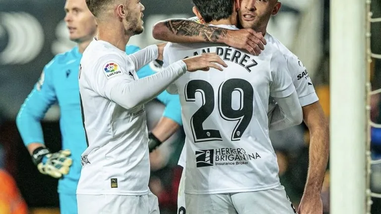 El Valencia contestó de inmediato con otra buena jugada de Gayà, que llegó hasta la línea de fondo para centrar para Marcos André, cuyo cabezazo salió desviado, pero en el minuto 40 la presión de Lingard provocó un choque entre Paulista y Nico y Awoniyi se llevó el rechace del centrocampista valencianista, quien aprovechó una mala salida de Mamardashvili para recortar al guardameta y rematar a portería vacía.