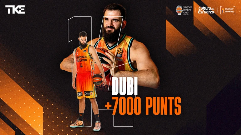 Con esos puntos, Dubljevic acumula ya 7.002 con la camiseta del Valencia Basket, una cifra histórica que le sitúa con casi 1.500 puntos de ventaja sobre el segundo clasificado, Rafa Martínez.