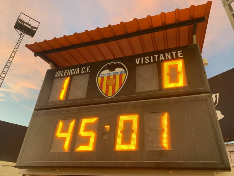 El once del conjunto che lo compusieron los siguientes futbolistas: Jaume Doménech bajo palos, Tierry Correia, Mangala, Gabriel Paulista y Centelles en defensa; Esquerdo y Racic en el doble pivote; Guedes y Yunus en los costados y Kangin Lee y Maxi Gómez como hombres más adelantados. La peor noticia del choque llegó en el minuto 20 cuando en un mal gesto cayó lesionado el surcoreano que hubo de ser retirado del terreno de juego con ostensibles dolores en su rodilla izquierda. A la espera se está del diagnóstico.