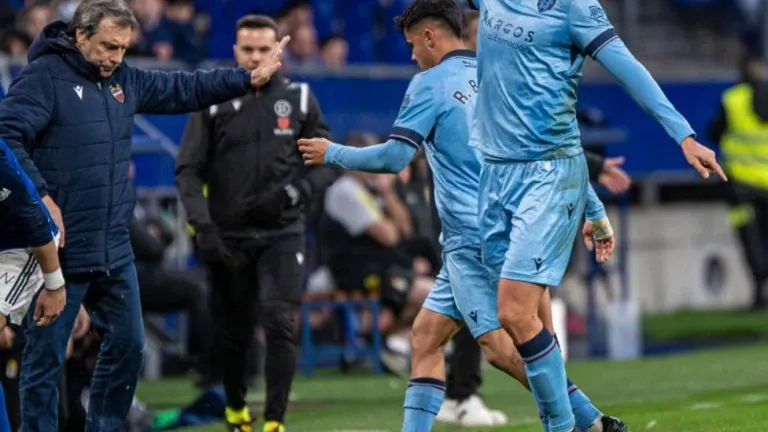 El Real Oviedo, en un partido loco, remontó primero en cinco minutos la ventaja inicial del Levante y después, tras el empate de conjunto levantino, se llevó el encuentro gracias a un gol de Dani Calvo en un saque de esquina, un resultado (3-2) que sitúa provisionalmente a los azules en puesto de eliminatoria de ascenso a LaLiga EA Sports.