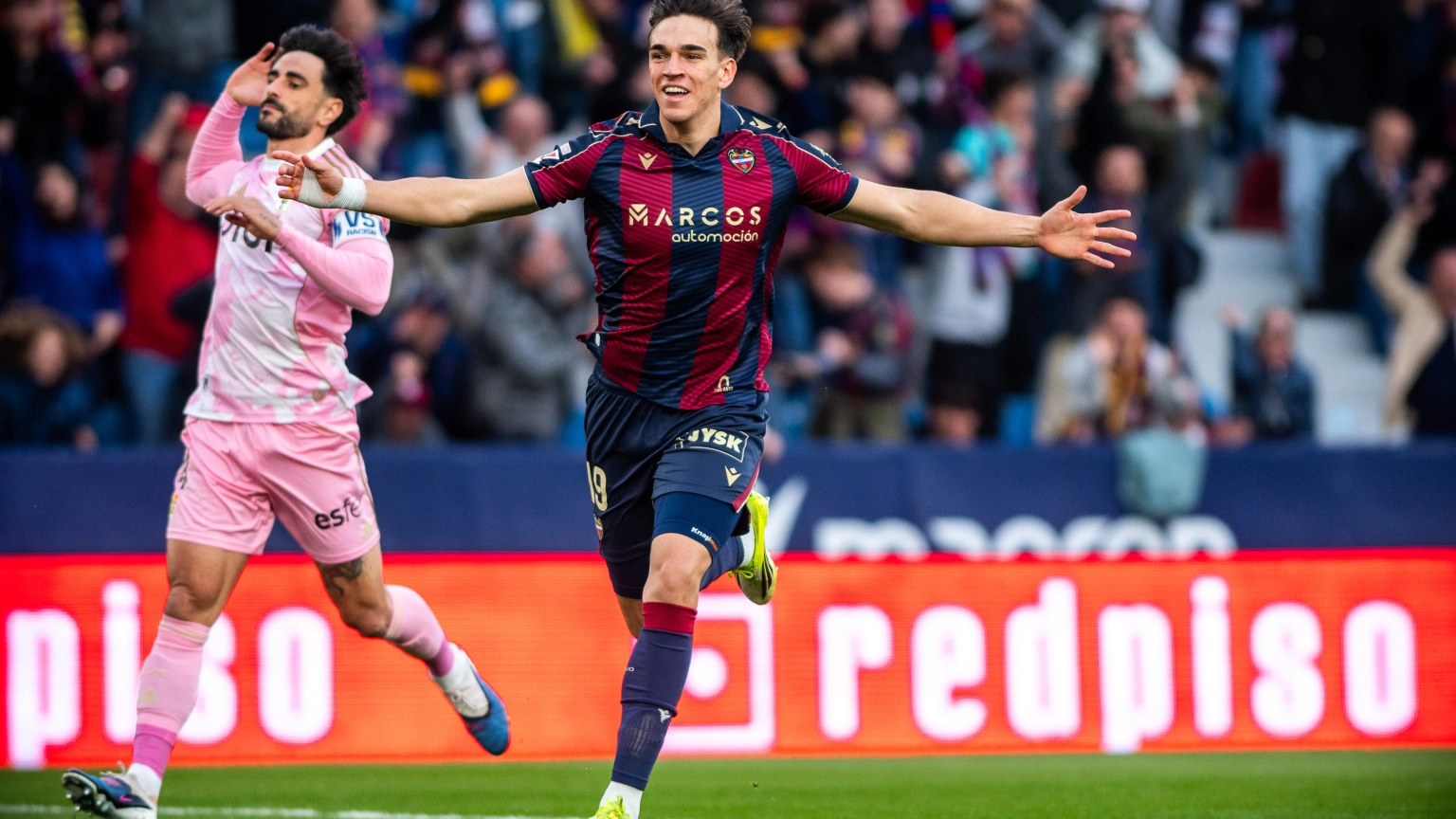 Un doblete del delantero en la primera parte encarrila el triunfo del Levante UD ante el Real Oviedo, que pese a que empató antes del descanso sucumbió con los goles de Losada e Iván Romero en el segundo tiempo
