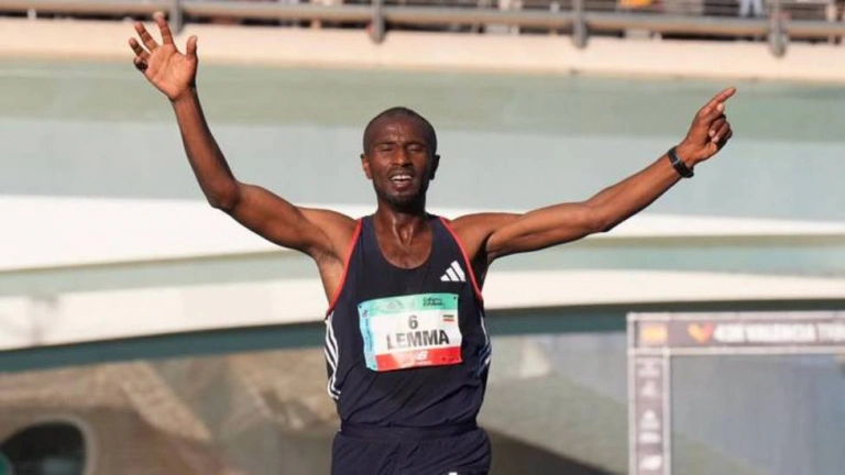 El etíope Sisay Lemma se proclamó este domingo vencedor de la Maratón Valencia Trinidad Alfonso y lo hizo con un nuevo récord para la prueba con un tiempo de 2:01:48 que supone la cuarta mejor marca mundial de la historia y confirma la cita como una de las mejores del mundo.