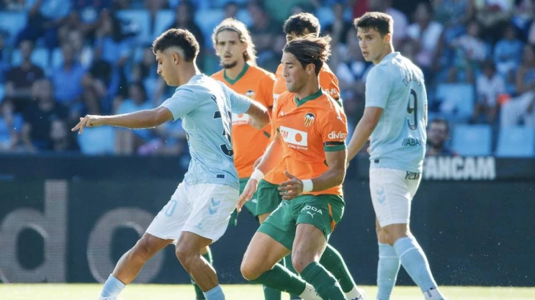 El equipo gallego volvió a mostrar su fragilidad defensiva en la primera aproximación del Valencia. Fue en un córner, una acción con tres cabezazos dentro del área y un centro de chilena de Rafa Mir que culminó Diego López, consecuencia de la falta de contundencia de la defensa celeste y la quietud de Iván Villar. El gol estuvo varios minutos en revisión por la sala VOR. No había fuera de juego, tampoco juego peligroso de Rafa Mir.