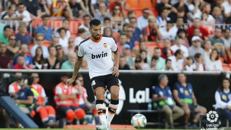 El central argentino cumple su cuarta temporada en el Valencia CF. Siempre ha jugado si las lesiones se lo han permitido. Lleva 100 partidos oficiales.