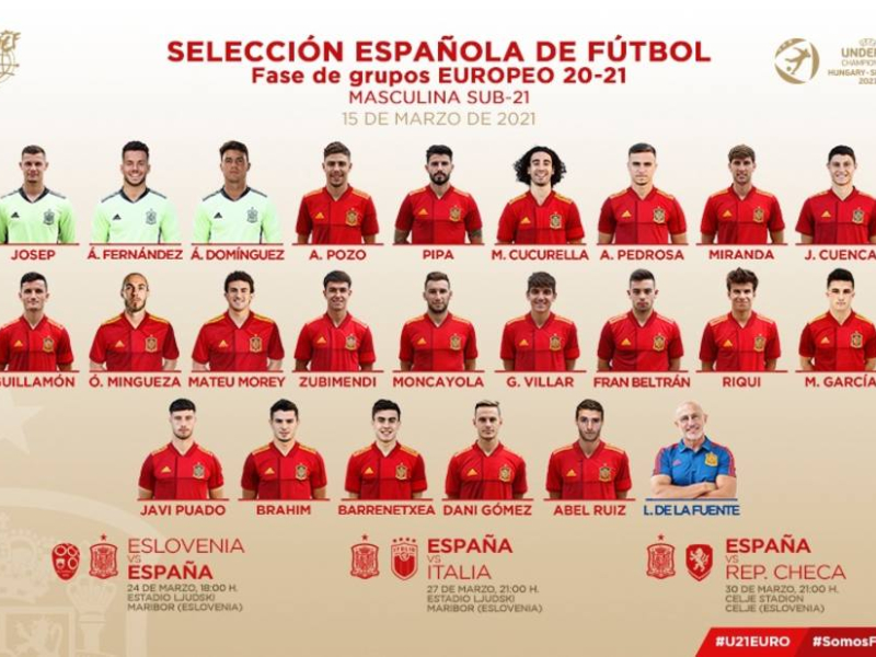 También se ha dado a conocer la citación de la selección española sub-21 que se concentrará, este lunes 22 de marzo, para disputar la primera fase de la Euro Sub-21. España que consiguió una clasificación excelente quedando primera de grupo sin conocer la derrota, tendrá que verse las caras ante la anfitriona, Eslovenia, Italia y la República Checa. En la lista están el valencianista Hugo Guillamón y el levantinista Dani Gómez. También han entrado el alcireño Josep Martínez, portero del Leipzig alemán, Gonzalo Villar, que pasó varias temporadas por Paterna y ahora brilla en la Roma y el delantero de Almusafes Abel Ruiz que creció como valencianista y ahora milita en el Sporting de Braga portugués.