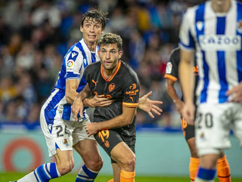 Los jugadores del Valencia CF sólo han marcado un tanto en las últimas siete jornadas. Lo hizo Castillejo. El otro fue de Zubeldia en propia puerta