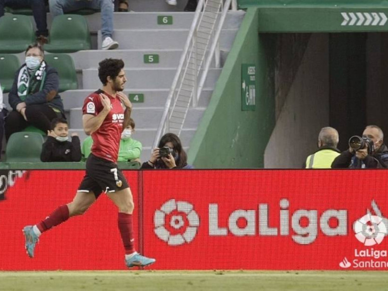 Un tanto del portugués Gonçalo Guedes en los primeros minutos de la segunda parte permitió al Valencia vencer en Elche (0-1) y prolongar su buena dinámica de resultados ante un rival que se alejó de su mejor versión y que tendrá que esperar para asegurar la permanencia.