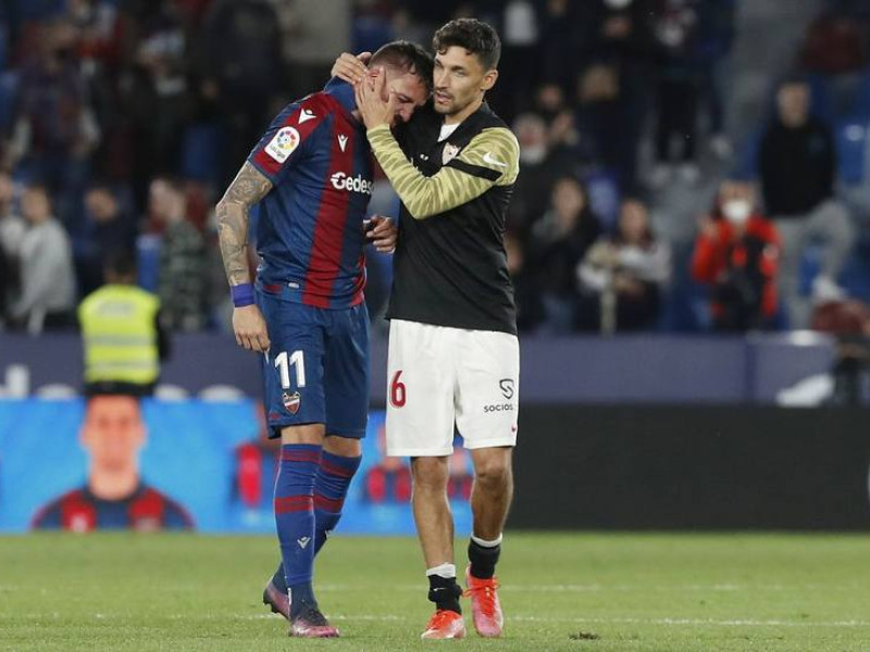 El sevillista Jesús Navas intentó consolar a Morales