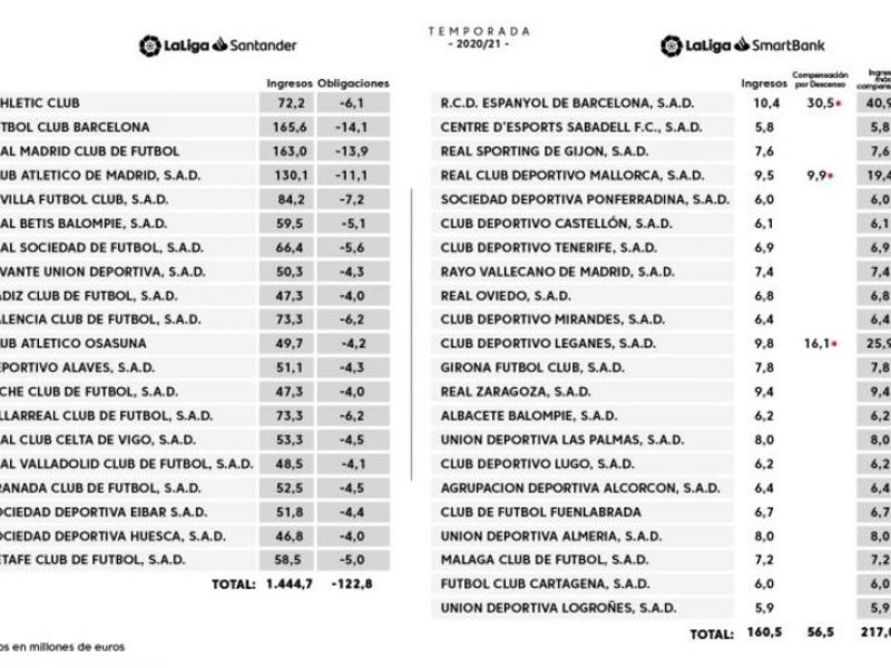 Por ir a casos prácticos, del montante global que genera LaLiga por esta partido (en el entorno de los 1.500 millones de euros anuales), una mitad se reparte de forma equitativa entre los equipos y la otra mitad se establece en función de la implantación que ese club tiene a nivel social (en función de abonos y taquillas entre otros conceptos) y en la posición en la tabla conseguida en las últimas cinco temporada (la última clasificación supone un 35%, la anterior un 20% y las tres primeras, un 15%).