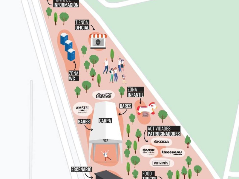 Y para vivir el valencianismo en su máxima expresión la zona de aficionados (Fan Zone) ches les aguardará muy cerca del estadio. En concreto en el Parque del Alamillo, donde desde las 11 horas del sábado se podrá disfrutar de una importante oferta gastronómica, de actuaciones en directo de grupos musicales como Bombai, Residente, Fat Gordon, Chimo Bayo o la DJ Inmir, de actividades para los más jóvenes y de una tienda con los productos oficiales del Valencia CF. Todo hasta tres horas de que arranque el choque.