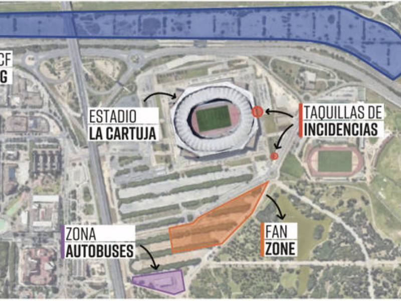 La zona para los seguidores ches en la capital andaluza estará ubicada a 200 metros del estadio de La Cartuja