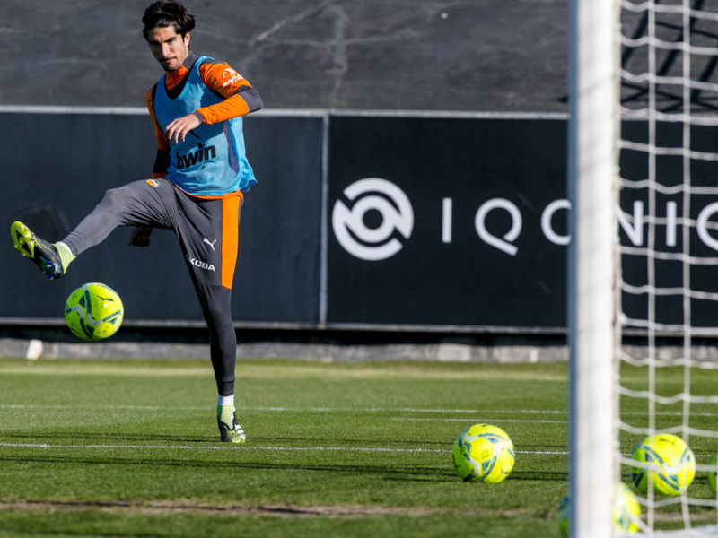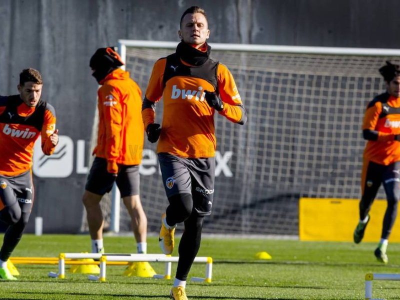Cheryshev, en el entrenamiento en la ciudad deportiva de Paterna