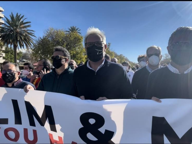 En la entrevista de “Los lunes al VAR”, ha estado participando Santi Cañizares, comentarista COPE y uno de los protagonistas y personas más aclamadas por los aficionados durante la manifestación. Santi se ha mostrado siempre activista frente a la gestión de Meriton. El sábado portaba la pancarta de la plataforma “Espíritu del 86” y la genta valoró su paso al frente, decidido y contundente, más todavía cuando muchos echaron de menos la presencia de ex jugadores y ex dirigentes. Cañizares lo tiene claro, es el momento de pasar a la acción: “se trataba de incitar a la gente a movilizarse por la dignidad y yo tenía que estar porque este es un problema que nos mueve a todos. El poder social del valencianismo tiene mucha fuerza, pero los políticos y los bancos tienen que escuchar. Y para que nos escuchen hay que salir más veces. En el medio plazo hay un serio peligro de desaparición. No hay una entidad que resista una mala gestión durante tantos años de forma consecutiva. Es el momento de mirar a un solo enemigo y no mirarnos entre nosotros. Hay que hacer fuerza común para empezar a incomodar a Peter Lim”.