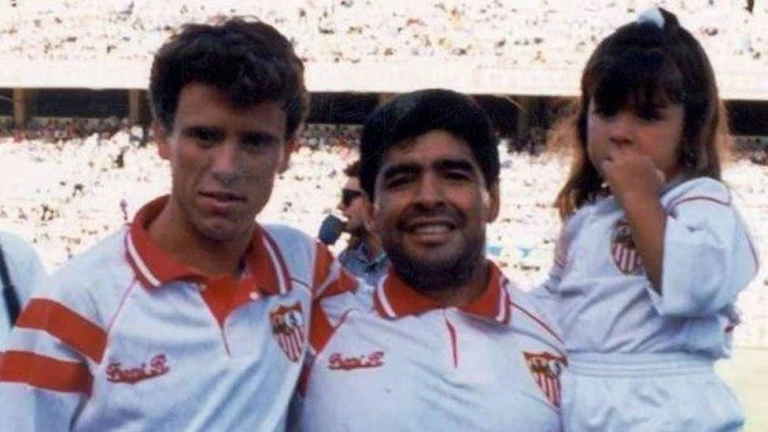 “Cuando iba a firmar Maradona en el Sevilla, nos cogió Bilardo, el entrenador, y nos dijo: va a venir Maradona para firmar. Quiero que entendáis una cosa, está Maradona y estamos nosotros. Si Maradona quiere venir a cenar, que venga. Que quiere venir a entrenar, que venga. Que no quiere venir, que no venga. ¿Lo entendéis? Perfecto. Levantó mucho entusiasmo en Sevilla. Hizo el club 15.000 socios nuevos. Nosotros íbamos a los sitios: dejábamos que saliera él, todo el mundo se acercaba a él y nosotros salíamos por otro lado para llegar al hotel o a donde fuésemos. Era el centro de atención, no era otro”.