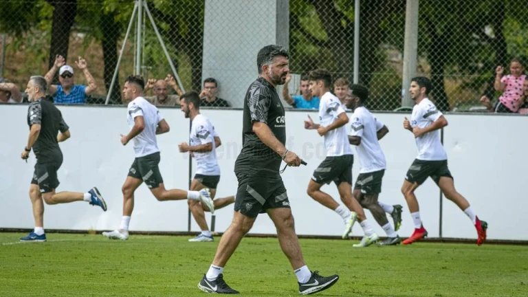 El valencianismo pudo disfrutar ayer de las dos primeras sesiones de pretemporada del Valencia CF. El cuerpo técnico abrió las puertas a la afición y esta respondió, una vez más, con creces. Una de las cosas que destacó el aficionado fue el carácter de Gattuso. Ordena y corrige y está muy encima de los jugadores. Sin embargo, a diferencia de otras pretemporadas donde se destaca el puño de hierro del entrenador, estos primeros días en el Valencia CF destacan por la obsesión de Rino por ser protagonistas con balón.