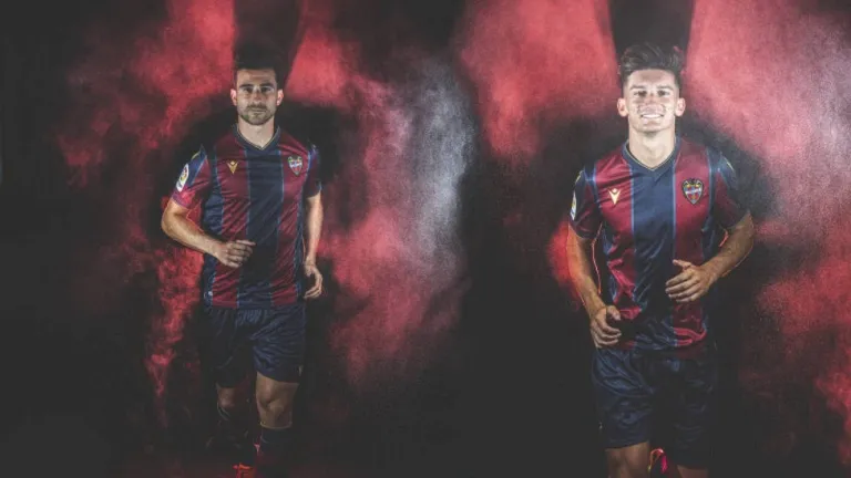 El Levante UD ha hecho pública la primera equipación que lucirán los granotas durante esta temporada en la Liga Smartbank. De la mano de la marca deportiva italiana Macron, la entidad homenajea el primer ascenso a Primera División de la historia del club en 1962-1963. Postigo, Pepelu y Cárdenas han sido los protagonistas para lucir las camisetas en esta ocasión. Y, de esta manera, poner a punto la campaña de este año que comenzará el 12 de agosto frente al S.D. Huesca a las 21:00 en el Ciutat de València.