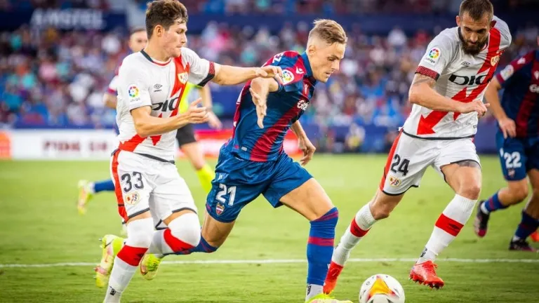 El Rayo Vallecano arrancó un empate en su visita al Levante gracias a un gol del debutante Sergi Guardiola en el tiempo de prolongación que neutralizaba el tanto de penalti de Roger en el primer tiempo y hacía justicia a lo visto sobre el terreno de juego, ya que el equipo vallecano estrelló dos balones en el poste y dispuso de más y mejores ocasiones que su rival.
