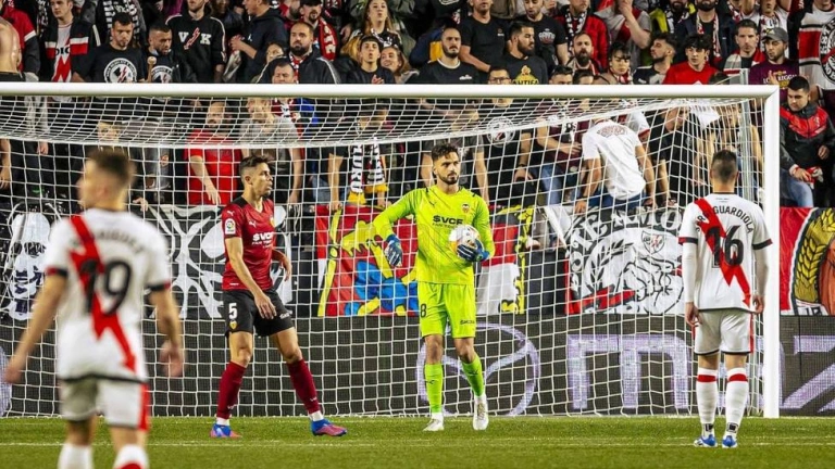 Isi Palazón, el jugador más determinante del Rayo, pudo igualar la contienda con un remate por bajo que de nuevo se encontró con Mamardashvili, que volvió a salvar a su equipo.
